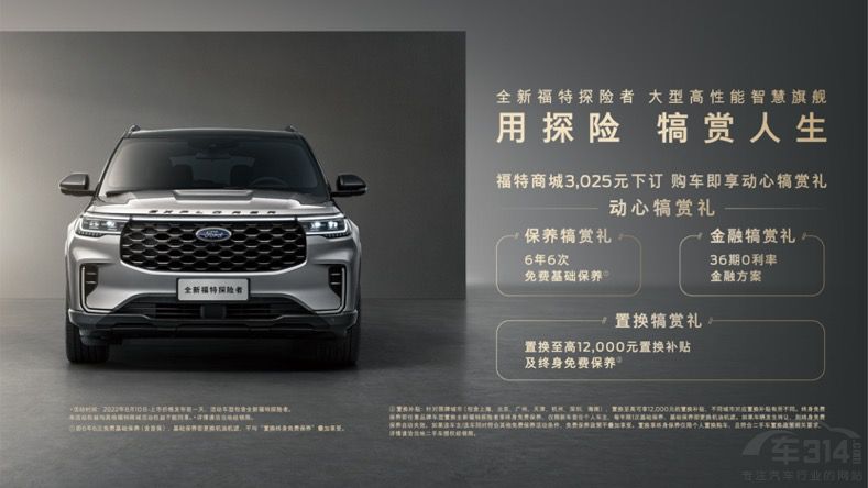 与此同时,全新福特探险者更推出福特商城3,025元下订,购车即享动心犒赏礼*,让购车用车轻松享。
