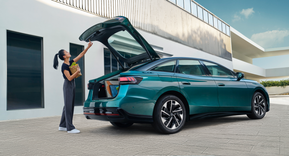 在造型设计上,ID.7 VIZZION车型采用了“自由之形”的设计理念,让美学与功能实用也可兼得。更流畅的车身线条带来0.23cd的更小风阻,同级少有的超大掀背设计带来1036mm的后备箱开口、521L超大后备箱空间及1629L后备箱延展空间。