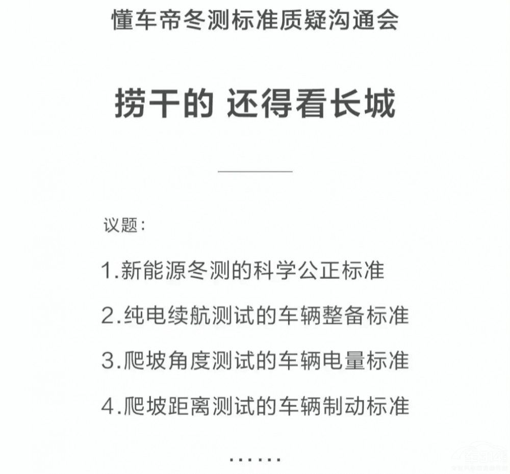 像懂车帝这类夏测、冬测大横评,由于自身拥有庞大的用户群体,很容易在消费市场引起连锁反应,所以更应该坚持客观公正、严谨科学的测试态度,为消费者带来尽可能真实的测试数据。可以请专业评测第三方机构制定测试环节和细节,制定合规合理、公开公正,能被大众和车企的测试标准。或者是请厂商专业工程师全程参与测试,有质疑可以及时解决,并通过实际行动自证。