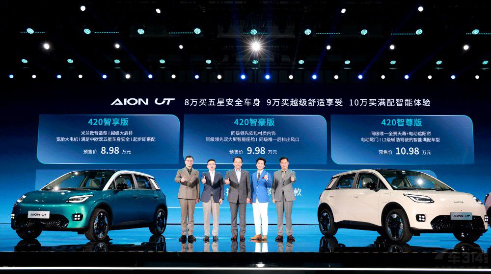 1月6日,埃安UT鹦鹉龙正式开启预售,新车共推出420智享版、420智豪版、420智尊版3个版本,预售价8.98万元-10.98万元。作为年底热度最高的车型之一,我们前期基于埃安UT公布的产品信息对其价格做了大胆预估,仅凭米兰时尚掀背设计、同级唯一中欧双五星安全车身、越级软包大后排、双大屏智能座舱这些亮点,亮相喊出的10万级已经很香了,没想到预售价格又给了超过1万的惊喜,看来是不准备给同级竞品留后路了。